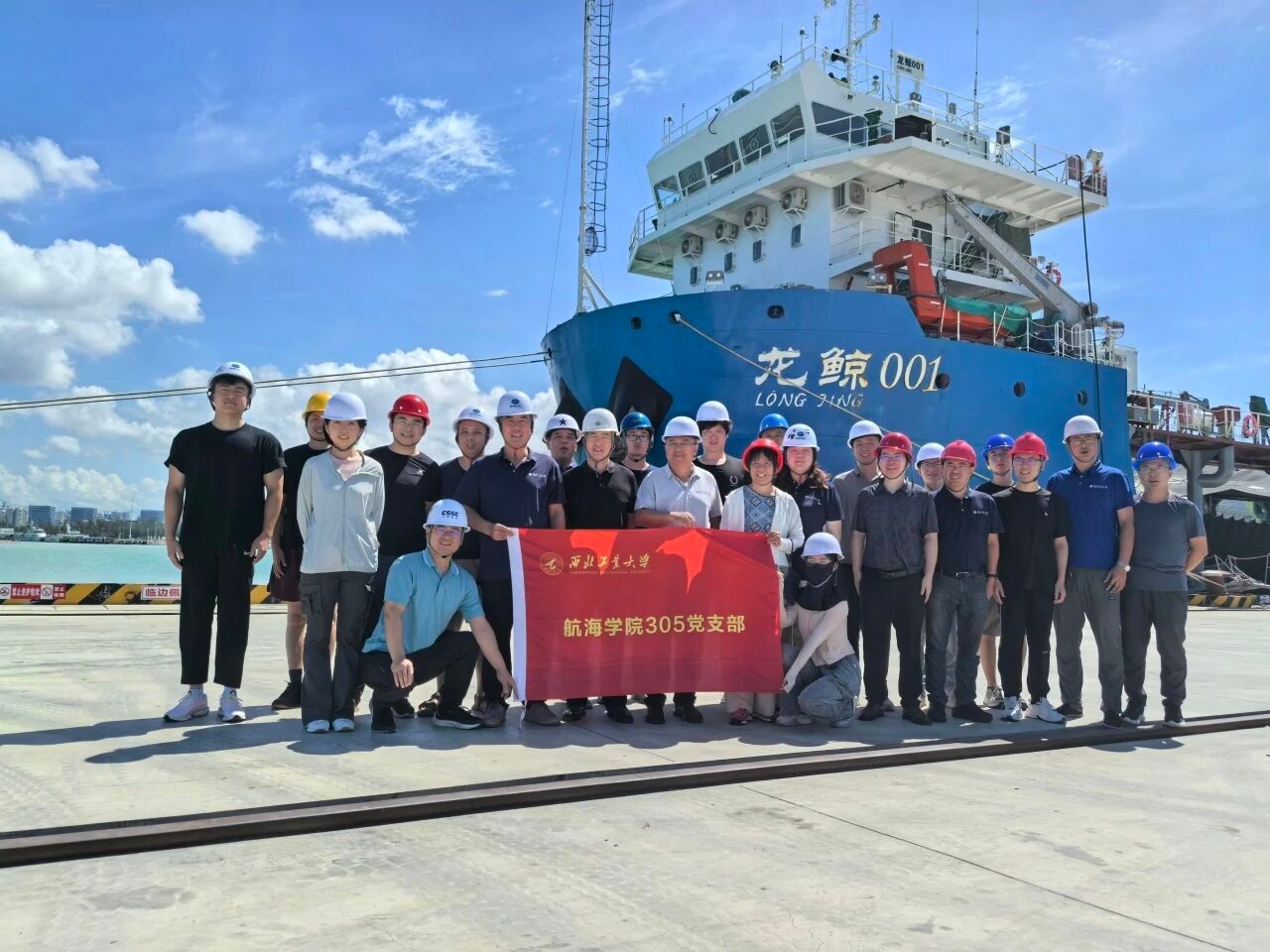 自主水下航行器科研创新团队师生在海南省三亚市某港区实验设备区集中收看