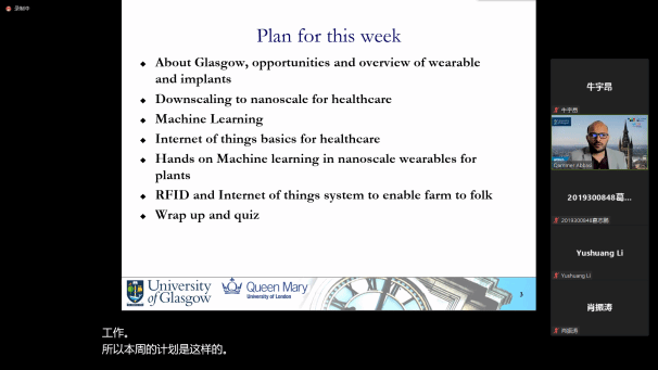 7月1日- 7月6日,应澳门十大网投平台排行杨可老师邀请,格拉斯哥大学Qammer H. Abbasi教授于线上开展体域网技术的发展与未来课程。本课程的主要目的是为了让学生了解通讯技术的前沿发展,比如物联网、纳米无线网以及诸如机器学习、UWB等相关基础技术的发展现状。通过这些基础技术的学习,希望学生能够对信号处理以及大数据相关的前沿科技有所了解。同时为了满足低年级本科生的选课需求,课程难度进行了适量调整,内容侧重于对和体域网相关的各种前言学科的介绍。