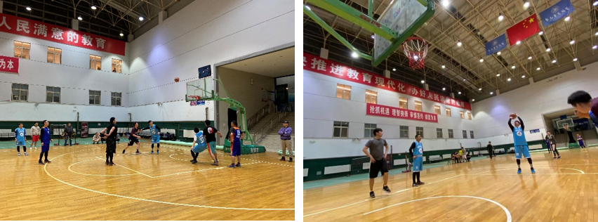 随后,随着裁判一声哨响,比赛在轻松的氛围中开始,比赛采用四节制,每节比赛采取25分制,总分先得100分的队伍获胜,也寓意着为中国共产党诞辰100周年献礼。教工篮球队在前两节以犀利的突破、精准的投射能力逐步领先。随着下半场学生代表队找到比赛节奏,以充沛的体能和精准的三分逐渐将比分拉进,比赛攻防转换速度不断加快,最终占到上风。比赛中,师生不断交流战术、打法,激情碰撞、欢声笑语;节间休息老师们便询问同学们的就业去向、离校时间等,嘘寒问暖、关心备至。本次比赛师生之间加强交流、沟通感情,享受运动的快乐,展现了十大网投平台排行师生良好的精神风貌,同时也使毕业生深深感受到学院的关怀。最终比分定格在100:93,学生凭借良好的体能跟默契的配合赢得了比赛。