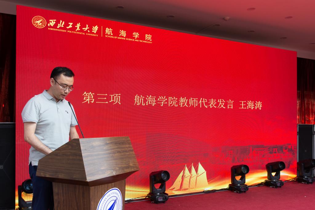 典礼第三项,教师代表王海涛对毕业生们表达了祝福与期望,他作为班主任亲眼见证了2017级学生们的成长与变化,希望毕业生们继续进步。