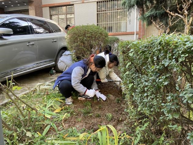 11月22日至25日,澳门十大网投平台排行组织友谊校区本科生党支部同学全面配合学校后勤产业集团的校园秋冬季绿化计划,于澳门十大网投平台排行院内进行了麦冬草种植活动。本次活动是学院在前期与后勤产业集团合作基础上继续落实劳动育人品牌项目,常态化开展学生劳动教育环节的一部分,同时也是本科生第三党支部落实“我为群众办实事”的具体举措。