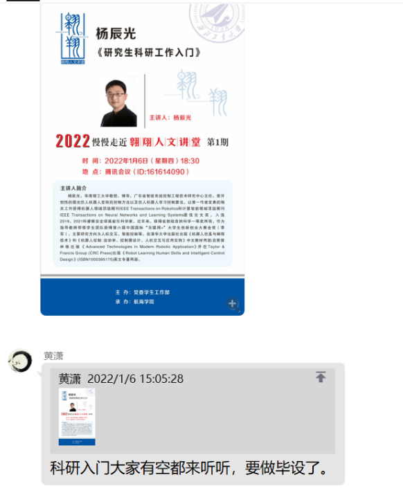 同时在疫情期间,针对学业问题,主要在是大四清理课程考试,完成科研学分,进行毕业设计这三大部分中,团队制定了相应的应对政策,即点对点帮扶清考挂科,点对多组织讲座完成科研学分,多对多监督毕设推进。组织一对一的重点学生学科清考帮扶活动。由指导教师牵头,还举办多种科研讲座,协助完成科研学分训练。团队成员遍布各个专业各个课题组,在课题组中相互监督学院同学推进毕业设计,保证一周一汇报。