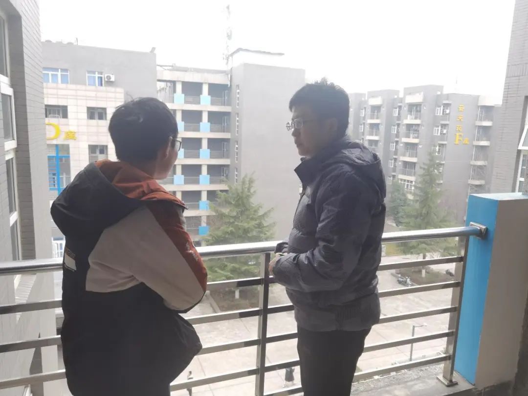 “云端自习室”已经告一段落。随着开学的到来,同学们陆续返校,继续准备着开学考试。为深入了解同学们的学习生活质量,22级辅导员李紫鹏来到男生宿舍,询问同学们在校学习生活情况,并向同学们提出宝贵的建议,让“云端自习室”从线上到线下,扎根到了校园环境里。