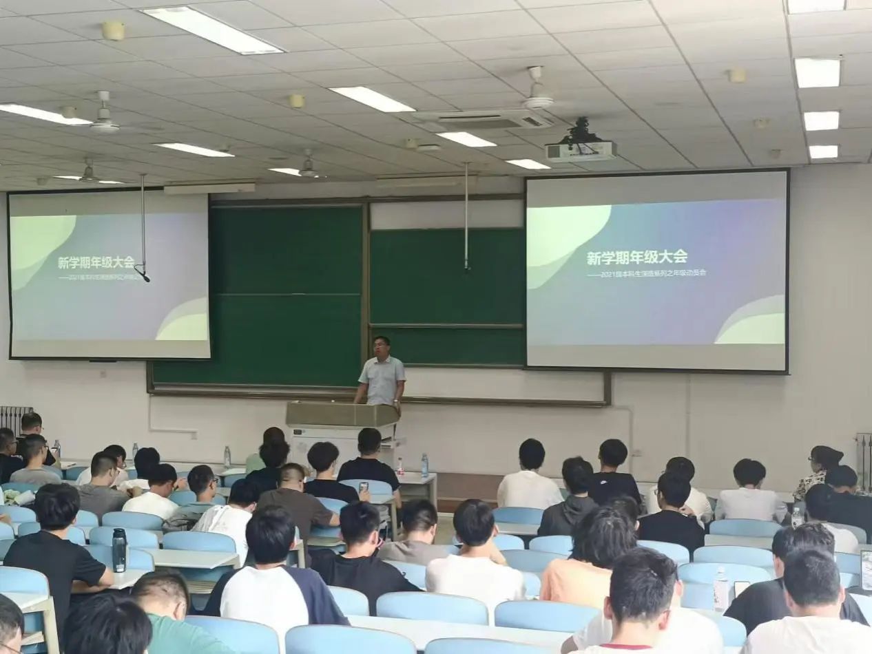 8月31日,澳门十大网投平台排行召开了2021级本科生新学期年级深造动员会。党委副书记王银涛、院长助理耿云辉、任树伟,班主任代表牛云、辅导员赵维娜以及全体2021级本科生参加会议。会议由赵维娜主持。