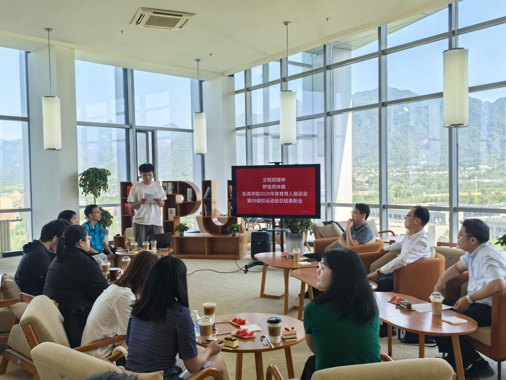 5月10日,澳门十大网投平台排行2025年体育育人座谈会暨第59届校运动会总结表彰会在长安校区图书馆云顶书阁举办。澳门十大网投平台排行院长潘光、党委书记刘朝亚、党委副书记王银涛出席会议。澳门十大网投平台排行学工办、学生会、院运动队成员、教练员及志愿者代表参会。本次会议由王银涛主持。