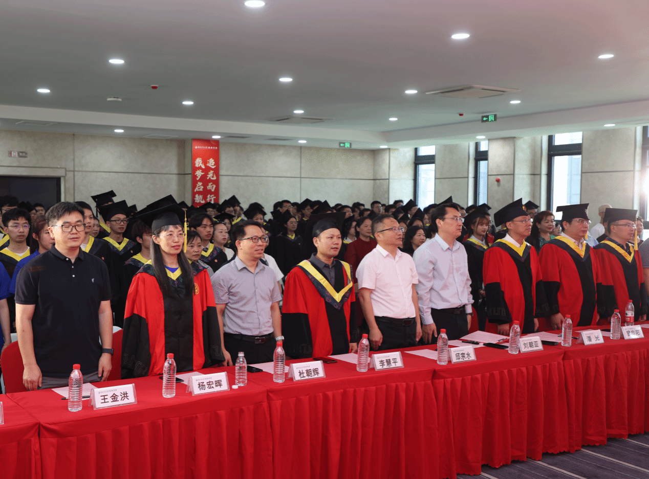 全体师生合唱校歌,声浪裹挟着毕业学子对母校最炽热的告白冲破天际,回荡在校园上空。最后,学院领导和导师代表为毕业生拨穗正冠,颁发证书并合影留念。