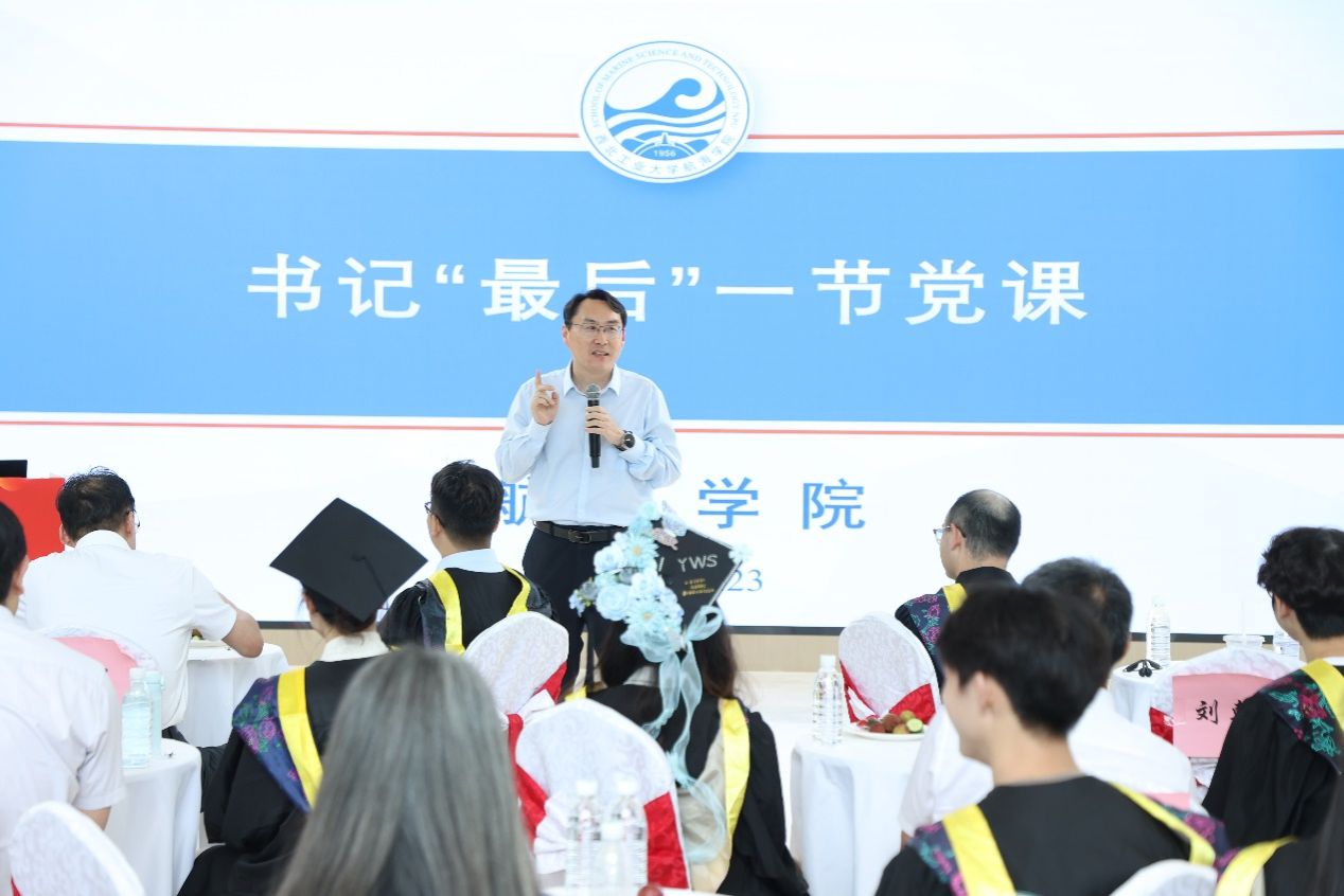澳门十大网投平台排行党委书记刘朝亚为毕业生讲授离校前“最后”一节党课。他勉励同学们在奔赴新征程时要锐意进取,将个人理想与时代需求紧密相融,与时代发展同频共振,在祖国的辽阔海域上挥洒汗水,书写不负青春、不负祖国、不负人民的奋斗华章。