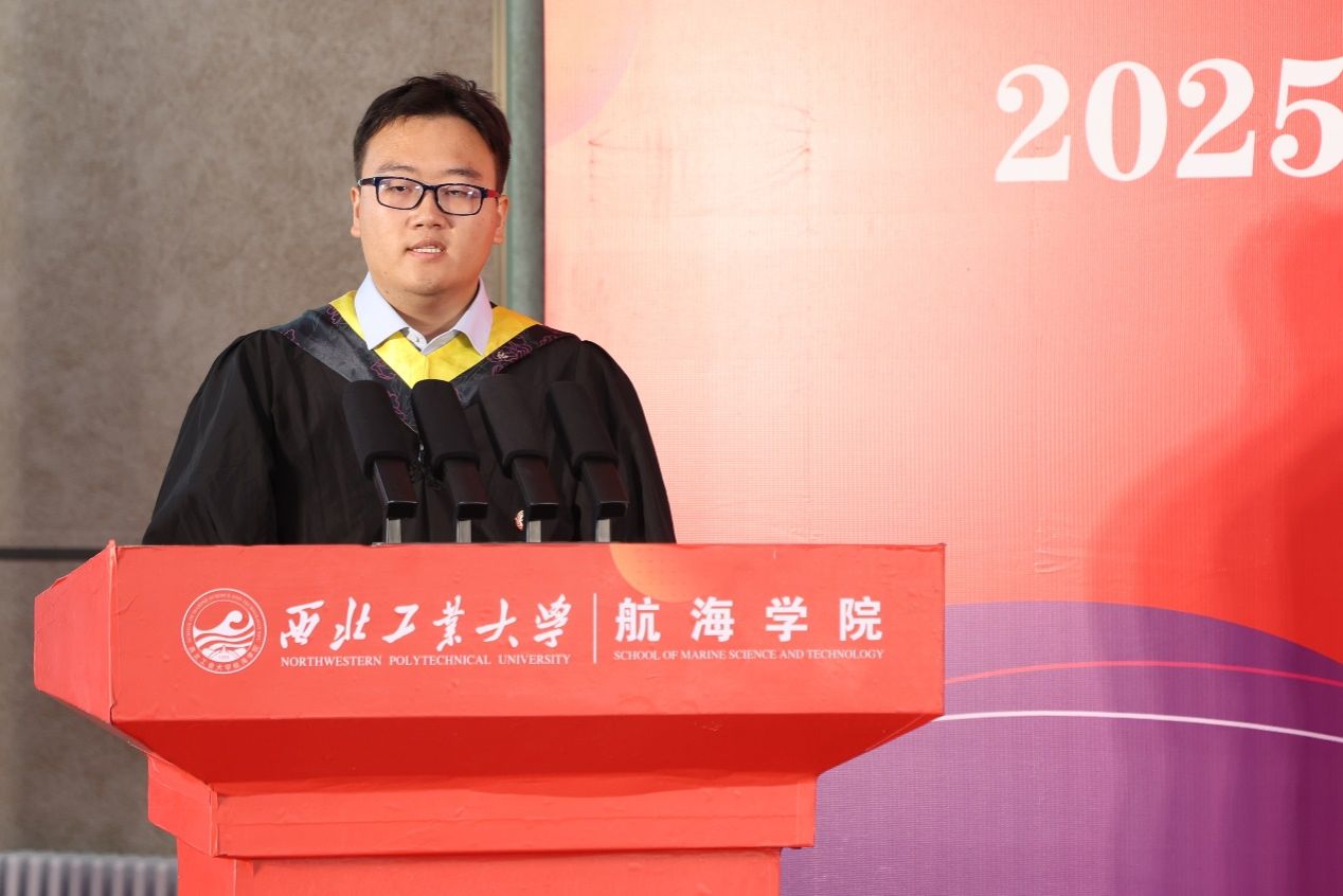 潘光院长寄语全体毕业生,为即将毕业的他们致以最诚挚的祝福和最热烈的祝贺。他对同学们提出了三点希望,一要“信念如舵,劈波斩浪志弥坚;二要“使命作楫,弄潮沧海勇者先”;三要“逐梦踏浪,智启未来向碧霄”。他期望同学们以“乘风破浪会有时,直挂云帆济沧海”的豪情壮志投身于海洋强国的建设事业中,在各自的学习和工作中兢兢业业,恪尽职守,以国家需求为罗盘,让青春在经天纬地的事业中绽放光芒!