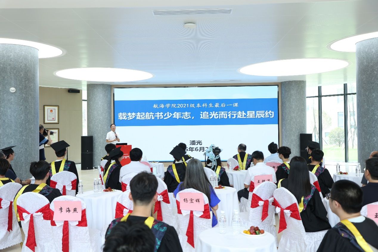 在毕业生即将告别校园、踏上新征程之际,澳门十大网投平台排行院长潘光为大家讲授了一堂意义深刻的离校前“最后”一课。他详细介绍了学院发展及专业学科建设情况,并寄语同学们要传承“敢为人先、攻坚克难、团结协作、无私奉献”的航海精神,为国家海洋事业贡献青春力量!