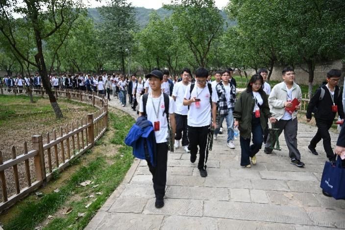 寻迹红色热土,感悟精神伟力。 9月27日中午,实践团队顺利抵达延安,在这片孕育中国革命的圣地上,开启了沉浸式红色探访之旅。首站杨家岭革命旧址中,中央大礼堂在苍松翠柏的环抱间巍然矗立,礼堂内陈设如旧,仿佛仍在回响着中共七大时指引方向的历史强音。随后,师生们走进毛泽东、朱德等老一辈革命家曾经居住的窑洞,目睹简朴至极的生活用具,真切感受到艰苦岁月里共产党人那份坚定的理想信念与“自力更生、艰苦奋斗”的崇高精神,大家对延安精神的内涵有了更为深刻和具象的理解。