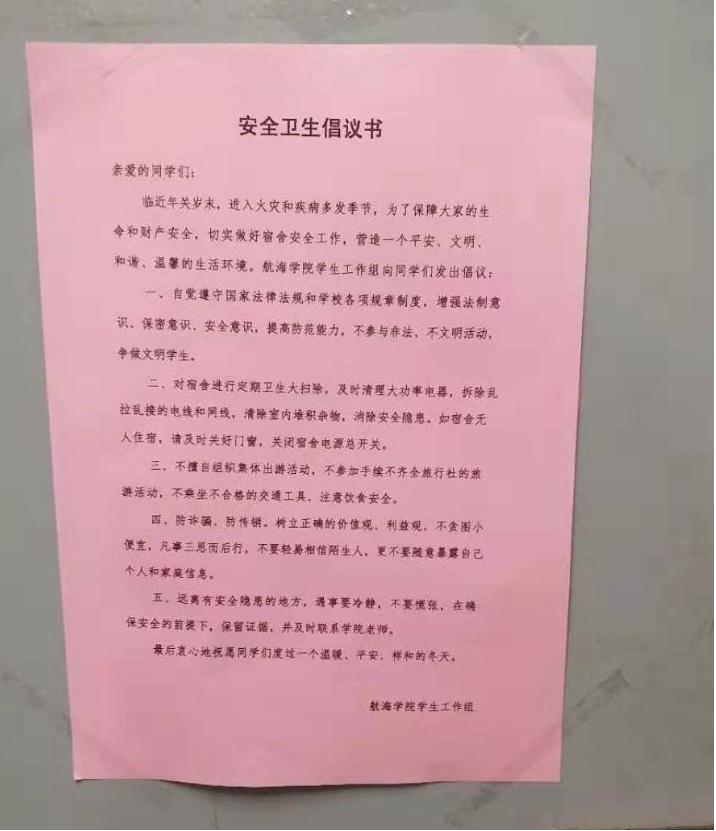 作为新生入学安全教育最后一个专题,9月6日晚19时许,十大网投平台排行研究生会在2019级新生中开展“校园宿舍安全倡议书”发放及安全知识普及活动,本次活动的主题为“宿舍是我家、依靠你我他”。在研会的大力倡导下,2019级秋季入学研究生分为2个博士生班,9个硕士生班,分别利用系会议室、教研室和宿舍召开安全教育主题班会,学习包含宿舍安全在内的交通安全、食品安全、人身财产安全、预防校园贷、网络电话诈骗、传销等方面的安全知识,讨论制定班级安全公约,设立宿舍安全员,做好活动小结。同时研会的同学积极引导新生在各自宿舍的醒目位置,张贴《宿舍安全卫生倡议书》,倡导在宿舍内规范行为、文明生活,禁止在宿舍内私拉乱扯电线、使用大功率电器、抽烟饮酒、饲养宠物等行为。此次活动的开展,有利于引导同学们明确安全责任,培养安全意识,使每一个人都自觉行动起来,共同维护安全、文明、和谐的宿舍环境。