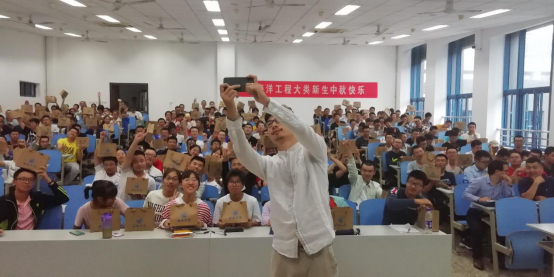 紧接着,老师们代表学院为新生送上中秋贺礼,在师生们的欢声笑语中预祝新生们中秋快乐。