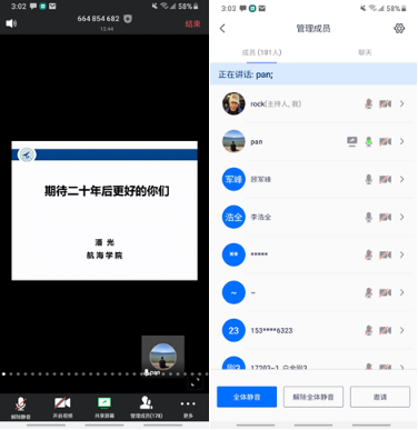 课程伊始,潘院长首先向身处湖北、武汉的同学们致敬,感谢他们坚持居家隔离,牺牲小我、成就大我,为打赢抗疫阻击战奠定了基础。感谢大家响应国家和学校的号召,宅在家里完成毕业答辩,并热烈祝贺大家研究生毕业获得博士或硕士学位!