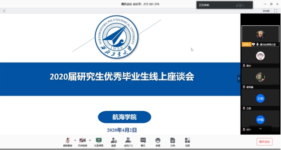 4月2日下午,澳门十大网投平台排行2020届硕士研究生座谈会在线上举行,学院党委书记孙华强、副书记王银涛、副院长崔荣鑫、院长助理张龙、F1研究生辅导员廉杰以及校院两级全体优秀毕业生出席本次会议,会议由王银涛副书记主持。