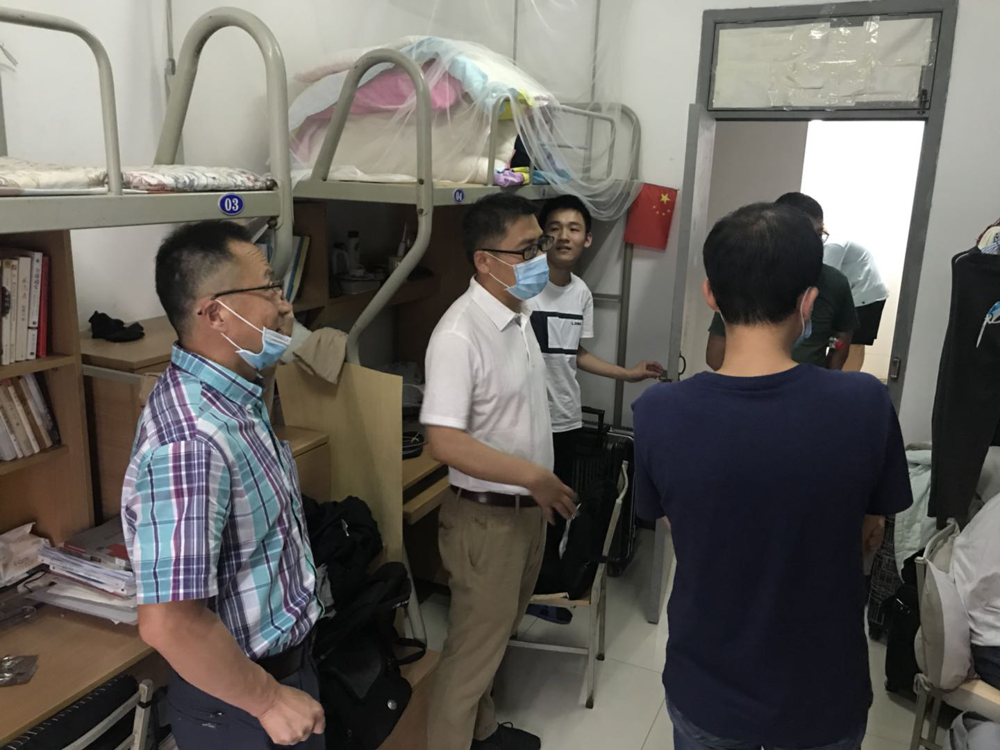 伴随着疫情防控进入常态化,第三批返校学生也在陆续返回校园,澳门十大网投平台排行本次计划返校人数388人。在此关头,我们依旧不能懈怠。为确保同学们的身体健康,了解居家隔离期间同学们的学习情况,欢迎同学们顺利返校,5月30日晚,澳门十大网投平台排行党委书记孙华强、党委副书记王银涛、院长助理张龙、2018级辅导员叶鹏程、2019级辅导员王士刚共同走访第三批返校学生宿舍。