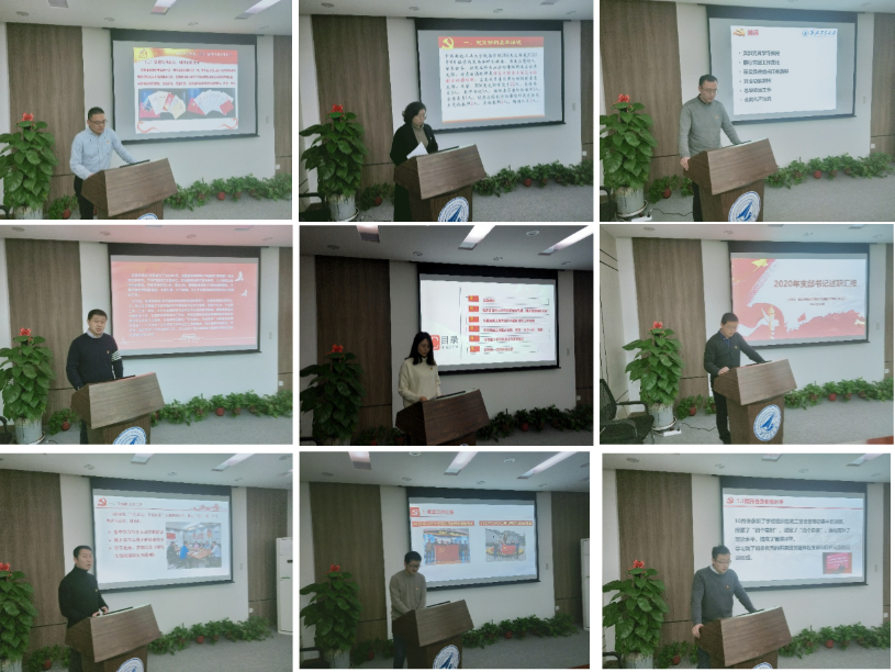 会上,9位教工党支部书记依次按照校党委组织部《关于开展2020年度党支部书记抓党建工作述职评议考核的通知》文件要求,重点围绕履行党建工作责任,落实党建工作重点任务,对上年度查摆问题的整改情况,取得的成绩和创新的亮点以及2021年度工作计划等方面进行了述职汇报。与会评委结合各位支部书记提交的书面报告和现场汇报,进行了点评评议,并重点指出了存在的问题和努力的方向。