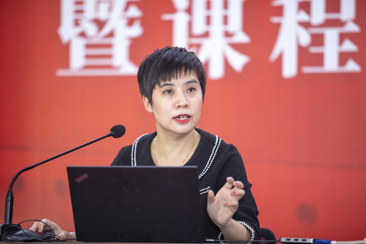 成立仪式后,马克思主义学院院长助理贺苗副教授为与会教师作题为《课程思政:元素挖掘和有效开展》的课程思政专题报告。报告结束后,与会教师就自己实际实施课程思政建设方面的疑惑与经验展开了热烈的讨论。