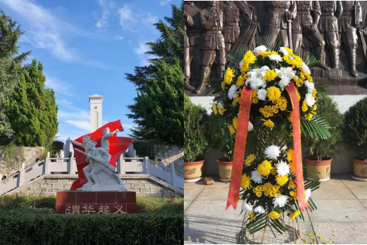 “渭华起义烈士永垂不朽!”(邓小平)在辅导员庆老师的带领下,同学们怀着沉重的心情,拾阶而上来到了渭华起义烈士纪念塔前,向为革命事业献身的烈士们敬献花篮并默哀。纪念塔前,面向鲜红的党旗,庄严的举起右手,重温入党誓词。最后全体师生缓步绕行一周,瞻仰烈士纪念塔并鞠躬致哀。