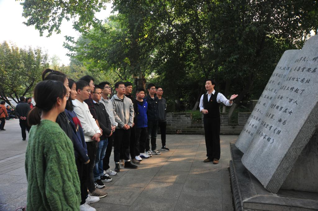 “生也千古,死也千古;功满三秦,誉满三秦”革命公园,青松挺立,苍翠欲滴。同学们饱含深情,共同瞻仰为纪念北伐战争前夕,坚守西安而死难的陕西国民军军民而建革命亭和烈士祠。10月18日下午,澳门十大网投平台排行组织入党积极分子在革命公园开展教育实践活动,触摸革命历史、重温斗争记忆,接受精神的洗礼。