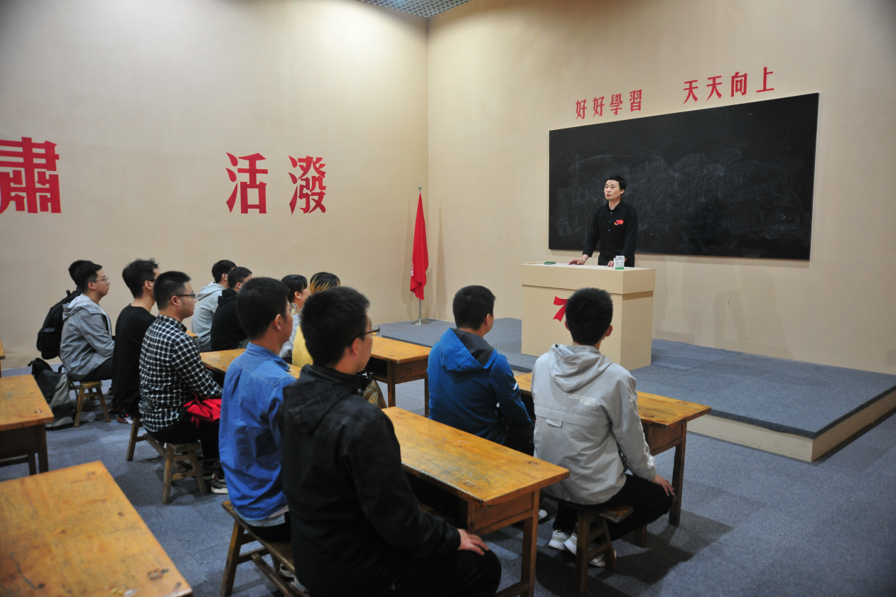 在以陕北窑洞为元素打造的实景思政课堂中,在鲜红的党旗下、在汇集西工大元素的展板前、在“不忘初心、牢记使命”主题教育宣传栏下,庆老师为同学们讲述了“不忘初心、牢记使命、永远奋斗”的主题党课。
