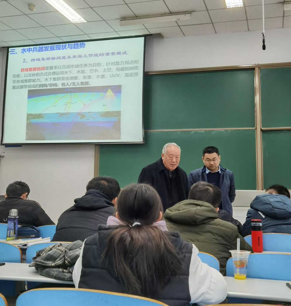 12月10日在长安校区教西D101教室,“海洋工程”大类新生研讨课《走向深蓝》系列课程由徐德民院士带来第十二讲《现代水中兵器》。徐院士从海洋强国战略、水中兵器概述、水中兵器发展现状与趋势、水中兵器涉及的科学技术问题、澳门十大网投平台排行对水中兵器发展的贡献五方面全面介绍了现代水中兵器状况,为海院学子们带来一场学术盛筵。