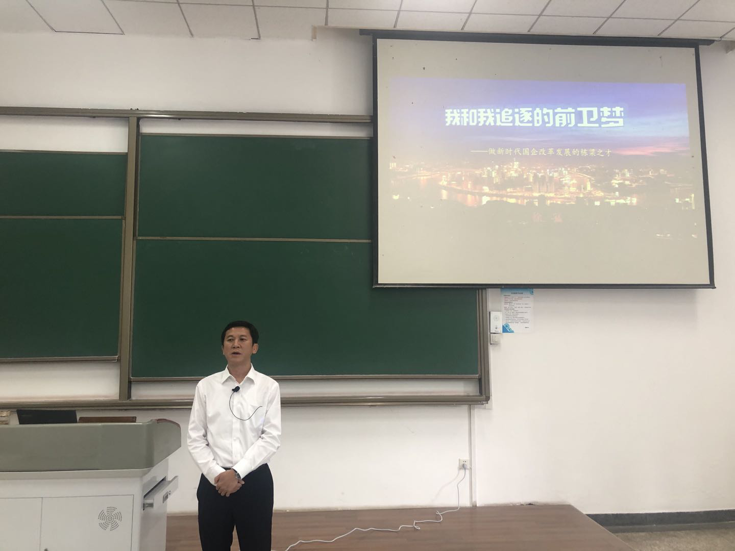 课程伊始,徐董事长播放了前卫集团所在的重庆市的宣传视频。然后,较详细地梳理了前卫集团的发展历程,包括艰苦创业期、调整探索期、改革脱困期和转型升级期四个阶段,给同学们讲述了军工科研人员艰苦奋斗砥砺前行的故事。徐董事长也向同学们展示了前卫集团的“十四五”发展规划和2035年远景目标。