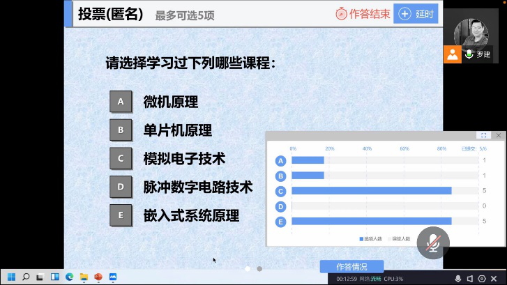 2022年1月10日是线上授课首日,澳门十大网投平台排行按照原定教学计划进行,共有23位教师通过钉钉、雨课堂、腾讯会议、腾讯课堂、QQ课堂等多个平台进行授课,涉及22门401名学生,线上授课顺利开展,教学运行平稳有序。课程包括澳门十大网投平台排行的大类平台课程、专业方向课程和专业选修课程。