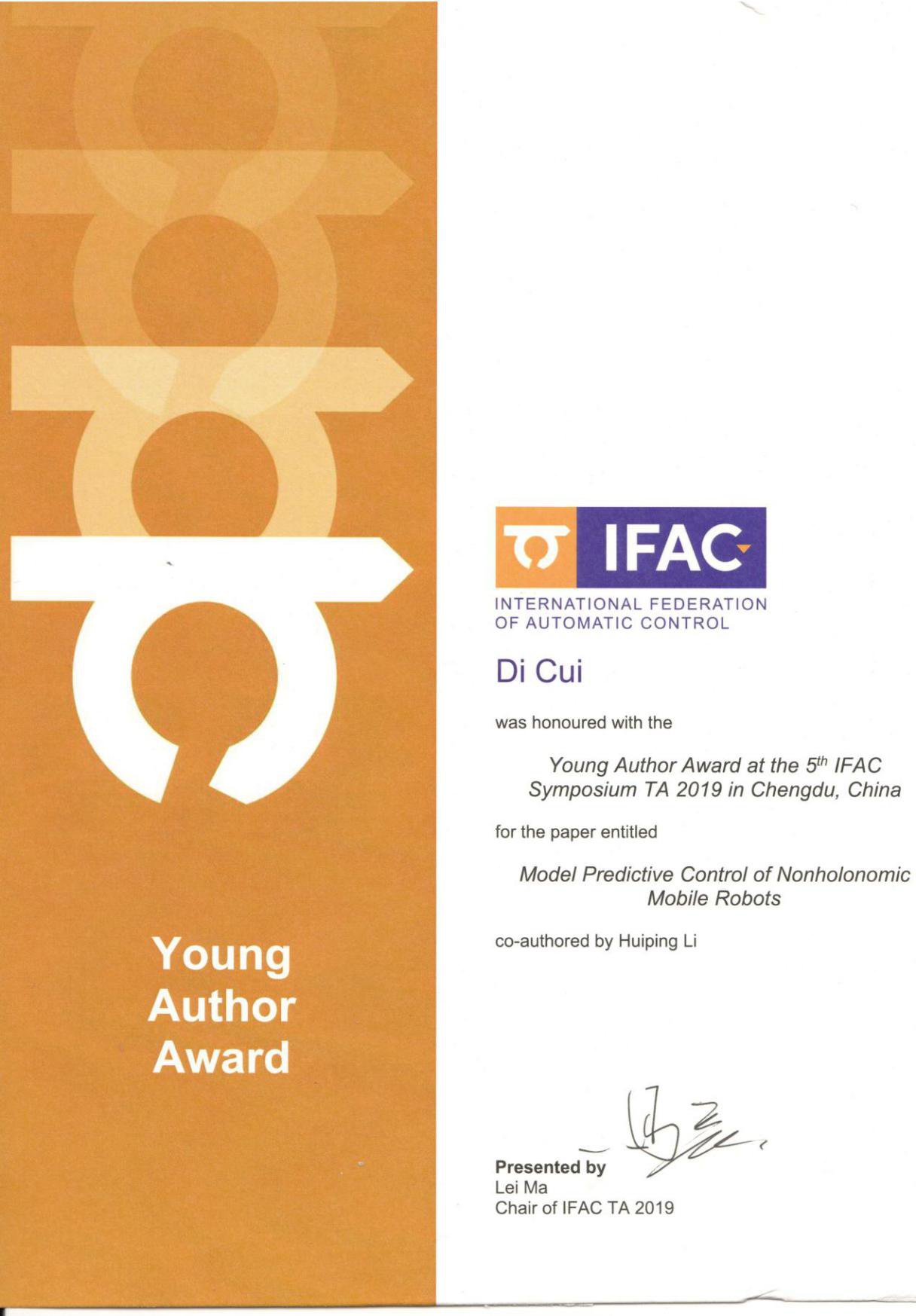 2019年9月25至27日,第五届IFAC Symposium on Telematics Applications (IFAC TA2019)国际会议在成都举行。此次会议的主题为基于通信环境下的网络控制系统、车联网系统和机器人系统,来自法国、德国、英国等8个国家和地区的500余名专家和学者齐聚一堂,共同研讨了控制技术、信息处理、通信技术等领域的最新科研成果及其前沿发展趋势。