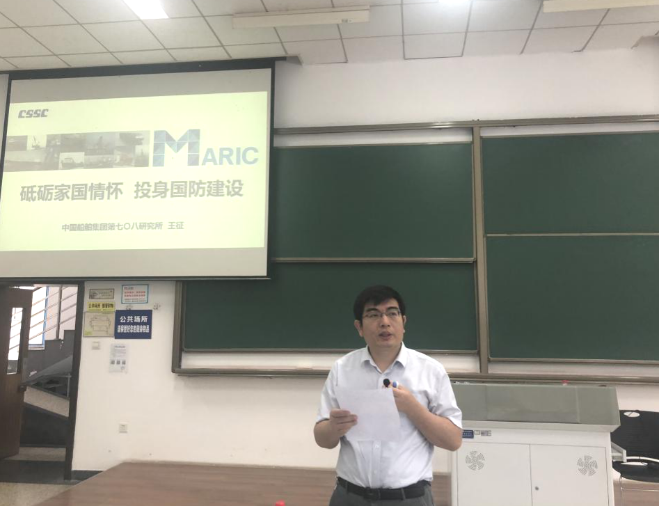 2021年5月29日上午10:30,在长安校区教西D106教室迎来“感悟深蓝”课程第三讲,由十大网投平台排行杰出校友、中国船舶集团公司第七〇八研究所党委副书记(主持工作)、副所长王征面向澳门十大网投平台排行2020级本科生主讲,主题为《砥砺家国情怀,投身国防建设》。澳门十大网投平台排行副院长曾向阳全程听课,并在课前详细介绍了王征同志的个人事迹。