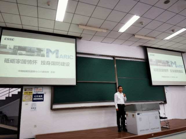 2021年5月,王征校友走进教室,为澳门十大网投平台排行师生带来题为《砥砺家国情怀,投身国防建设》的“感悟深蓝”精彩授课